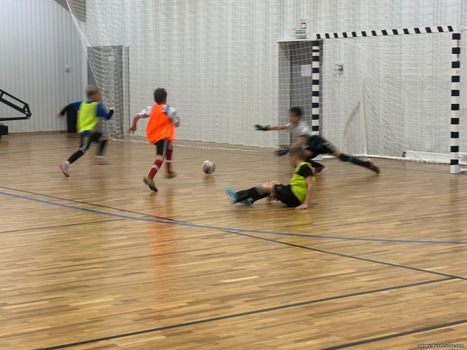 Напомним и порадуемся за соседей, что и у них теперь есть свой Фок с большим спортивным залом, где можно проводить всевозможные турниры и соревнования. Новизна зала и непривычно скользкий паркет на первых минутах внес свои коррективы в эту интересную и захватывающую игру. В начале игры Матвей Ермолаев открыл счет, войдя в историю Одоевского футбола, как игрок, забивший первый мяч в новом Фоке в официальном матче. Вскоре хозяева после ошибки наших защитников не только сравняли счет, но и вышли вперед с разницей в два мяча. Нашим футболистам пришлось приложить множество сил и стараний, чтобы выровнять игру и сравнять счет. Такая игра – качели, когда одна команда забивает, а вторая сравнивает, держала всех участников и многочисленных болельщиков в лице родителей, до конца игры. Но все же точный удар нашего капитана Арсения Денисова в самом конце игры принес нам победу. В серии послематчевых «пенальти» успех был на стороне хозяев.