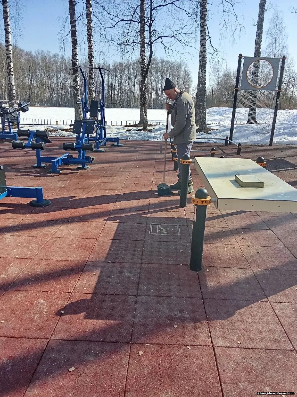 Работы по благоустройству на стадионе Колос
